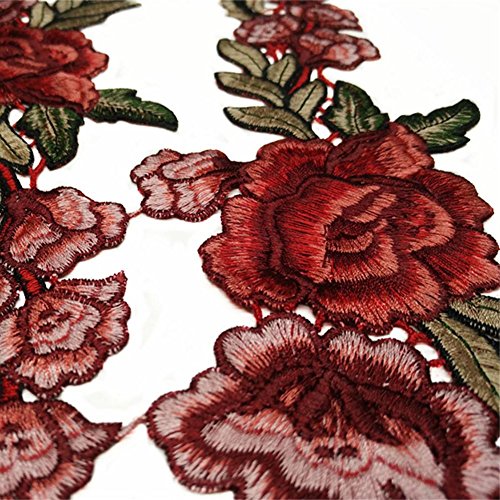 Embroidered Lace Fabric Ribbon Trim Neckline Collar Applique Patch Scrapbooking Embossed Decorated Sewing for Craft 1 Pc (CL259-R)