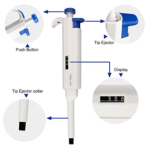 Four E's Scientific 100uL-1000uL High-Accurate Single-Channel Manual Adjustable Variable Volume Pipettes