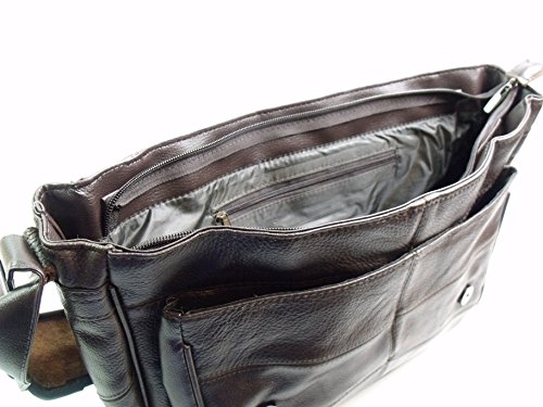 Product Description MENS WOMANS SOFT LEATHER DESIGNER MESSENGER BAG SHOULDER BAG IN BROWN BY LORENZ BEAUTIFULL BAG WITH THE FOLLOWING FEATURES :- LARGE FLAP OPENS TO REVEAL LARGE ZIPPED OPENING WITH INTERNAL ZIPPED POUCH AND 2 FURTHER POUCHES FOR MOBILE PHONE ETC FLAP SECURED BY MAGNETIC FASTENERS, ALSO THERE IS ANOTHER LARGE POUCH UNDER THE FLAP, ALL FULLY LINED EXTERNAL ZIPPED POUCH ADJUSTABLE STRAP WITH PADDED SHOULDER FROM 80CM TO 140CM MEASURES 40 X 27 X 10 CM 0