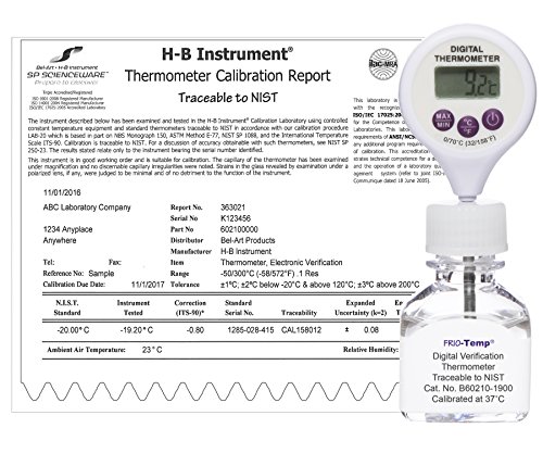 H-B Frio-Temp Calibrated Electronic Verification Lollipop Stem Thermometer; 0/70C (32/158F), 37C Incubator Calibration (B60210-1900)