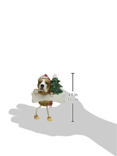 Pit Bull Ornament Tan and White with Unique "Dangling Legs" Hand Painted and Easily Personalized Christmas Ornament