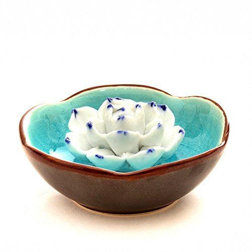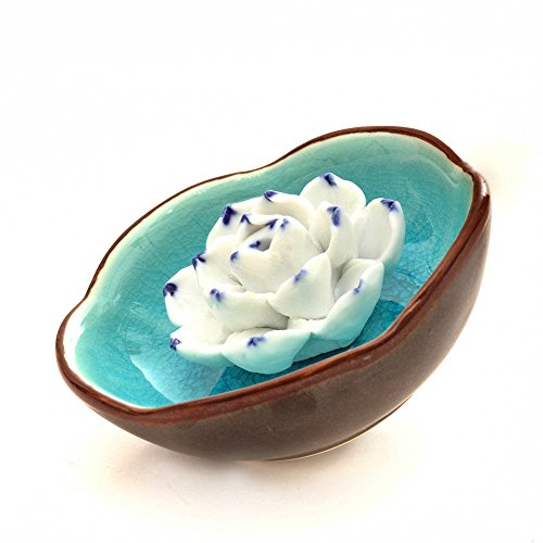 Medoosky Single-Hole Handmade Lake-Blue Ceramic Lotus Censer/Incense Burner/Incense Holder