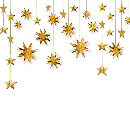 - PACKAGE INCLUDES-4 set gold party decoration package include 2 set five-pointed star garland,2 set 3D paper star banner.This party decoration set is perfect to spice up, decorate, and impress at any event.