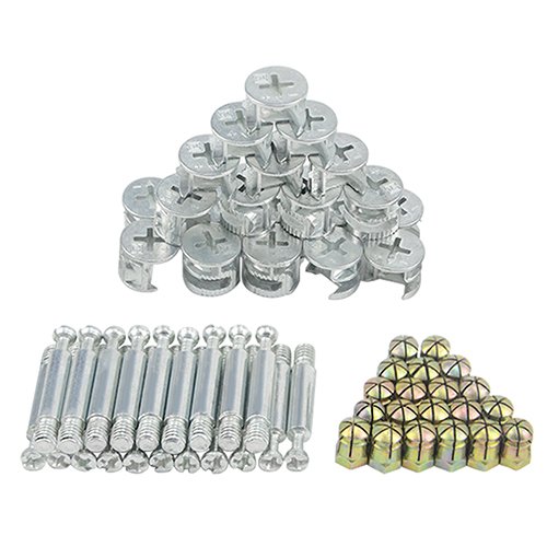 TOVOT 20 Pack Furniture Side Connecting Cam Fittings 12 mm x 15 mm (L x D)Nylon Pre-inserted Nuts Dowels