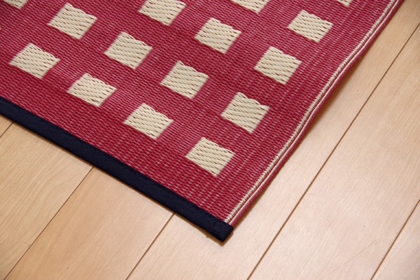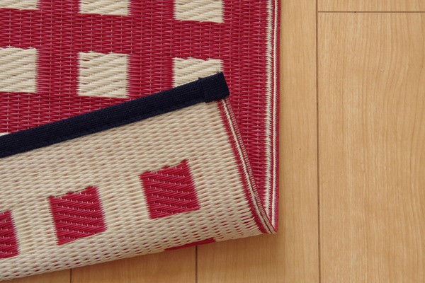 【商品名】アトピー協会推奨品 パッチワーク調 洗えるポリプロピレンラグマット 『ブロード』 レッド 約174×174cm