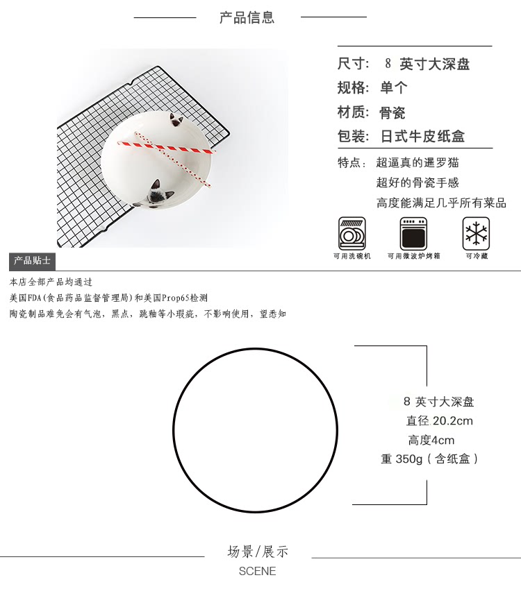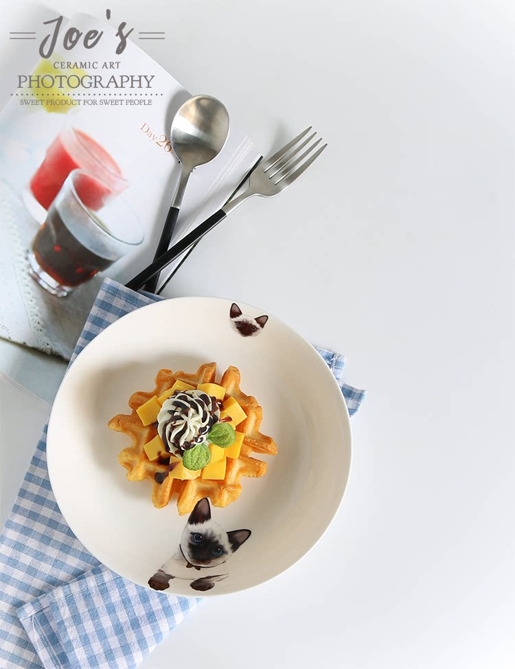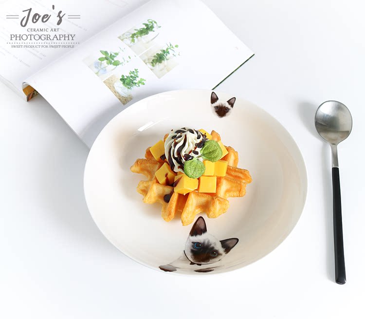 暹罗新款猫系列825英寸大喵星人家用骨瓷深盘爱宠良品暖心盘子