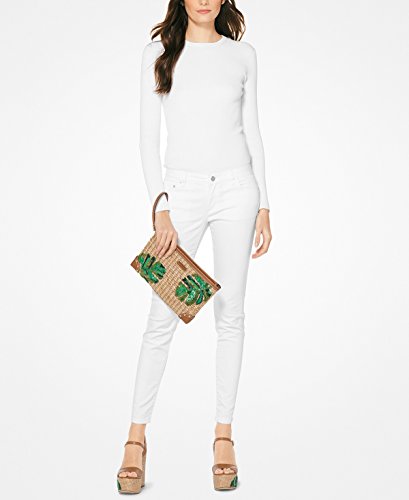 Michael Kors Extra Large Woven Malibu Palm Leaf Zip Clutch, Natural/Palm