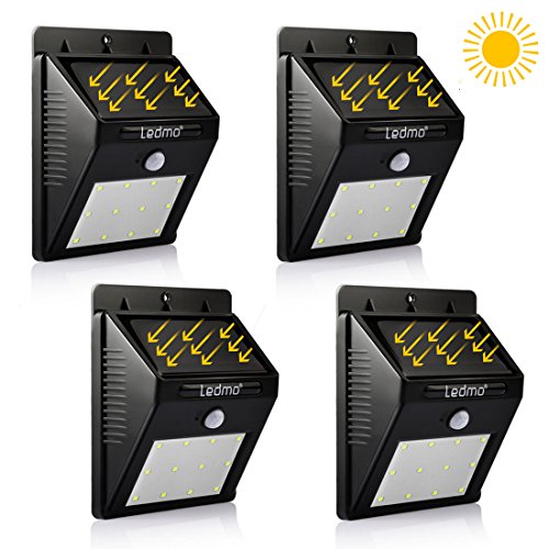 LED Solar Sensor Lights- LEDMO Solar Motion Lights- White Solar Sensor Lights- Waterproof Motion Sensor Wall Lights for Yard, Garage, Garden- 4 Pack