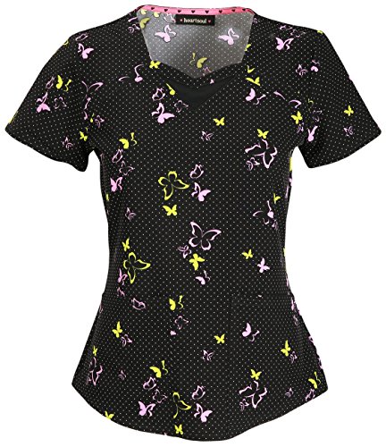 heartsoul Women's Sweetheart Neck Butterfly Print Scrub Top Print