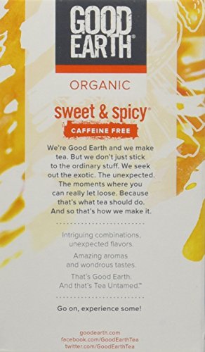 -. Title : Good Earth Teas Organic Sweet and Spicy Caffeine Free Herbal 18 Tea Bags, 4 Count