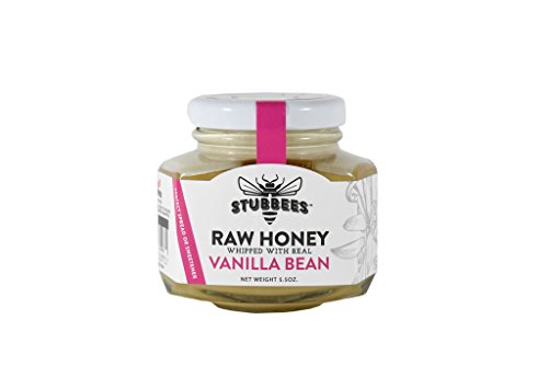 -. Binding : Misc. -. Brand : Stubbees -. Color : White -. Feature : USA Sourced Honey / Organic & Natural Ingredients / Made in Small Batches -. Label : Stubbees -. LegalDisclaimer : Actual product packaging and materials may contain more and different information than what is shown on our website. We recommend that you do not rely solely on the information presented and that you always read labels, warnings, and directions before using or consuming a product. -. Manufacturer : Stubbees -. NumberOfItems : 1 -. PackageQuantity : 1 -. ProductGroup : Grocery -. ProductTypeName : GROCERY -. Publisher : Stubbees -. Size : 5.5 Ounces -. Studio : Stubbees -. Title : Stubbees Raw Honey Whipped w/ Real Vanilla Bean, 5.5 Ounces