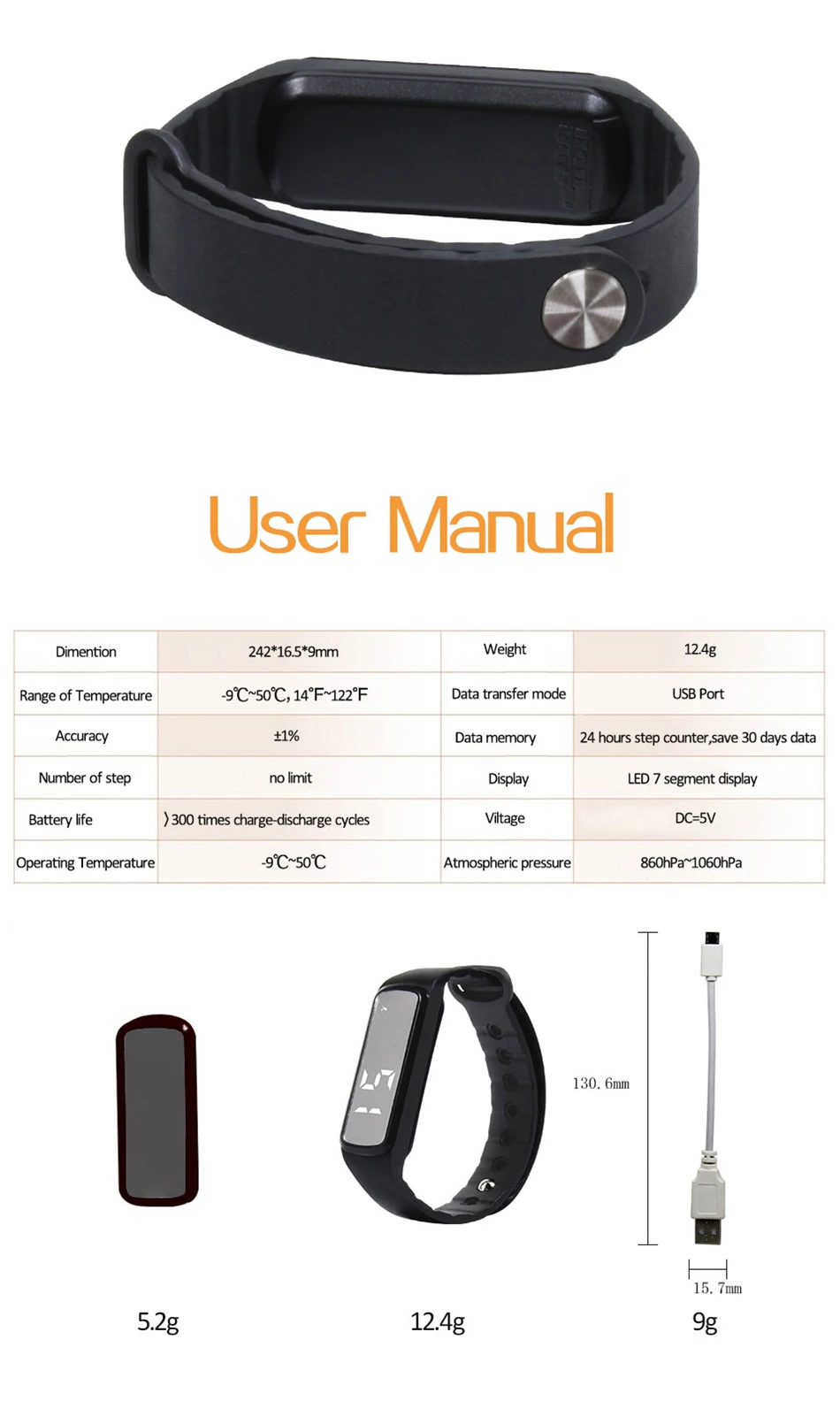 Date Memory:24 Hours Step Counter, Save 30 Days Date