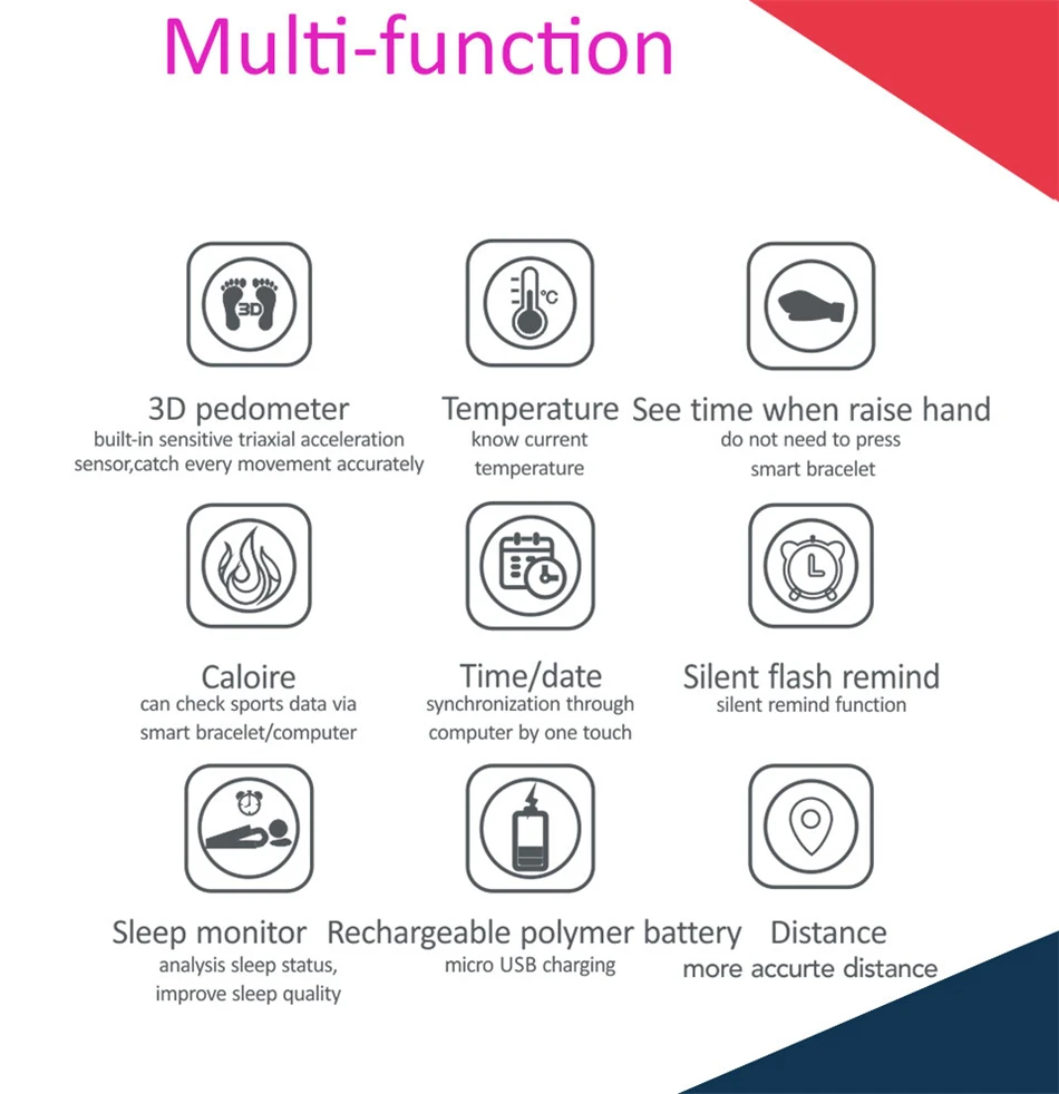 Feature:Sleep Tracker,Water Resistant,Complete Calendar,Fitness Tracker,Auto Date,LED display