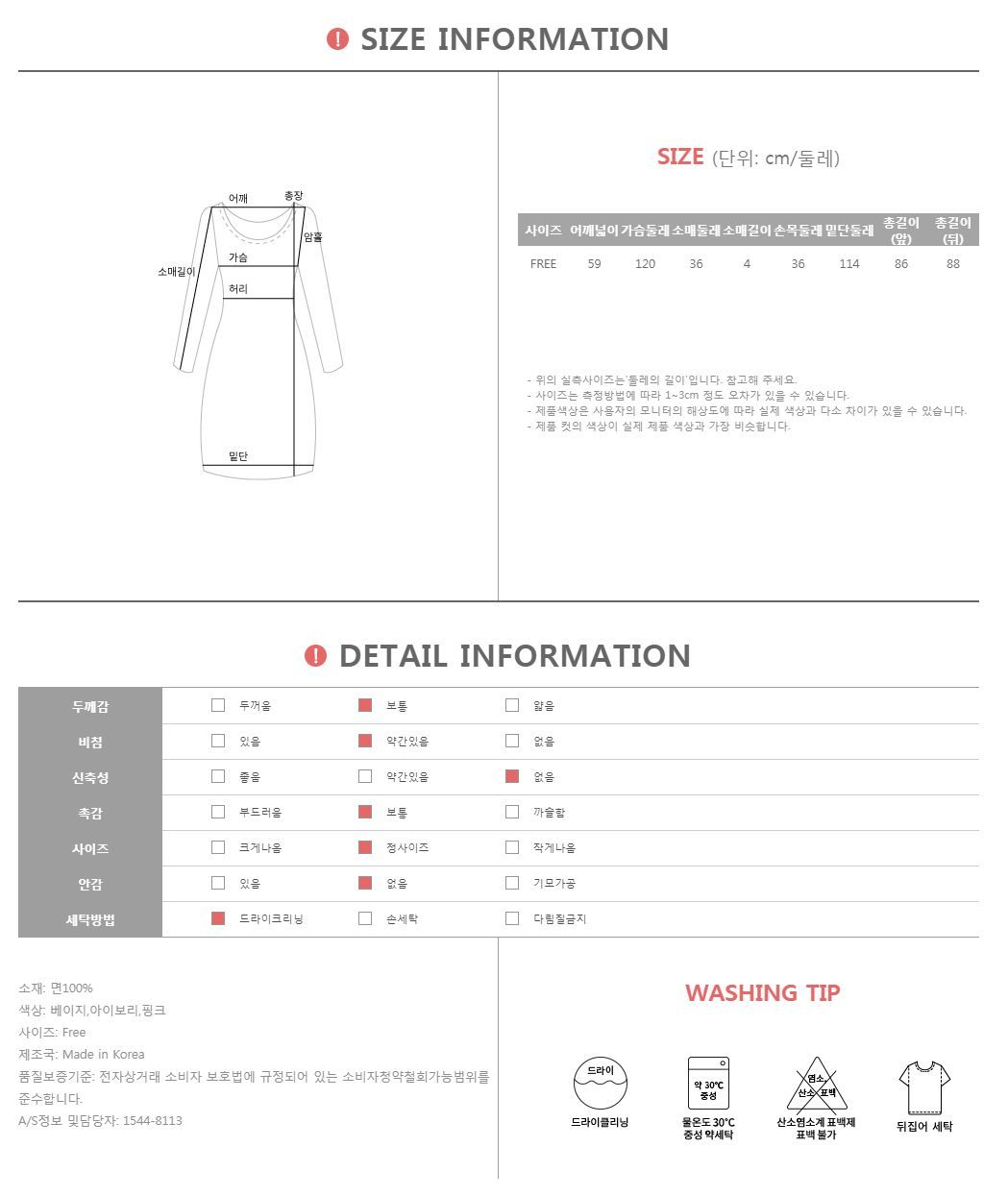 컬러는 베이지,아이보리,핑크 3color로 구성되어 있으며, 모델의 착용 컬러는 핑크 입니다.