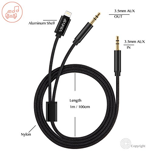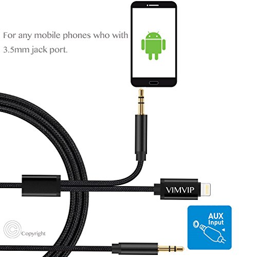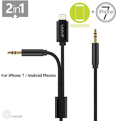 Multi Devices Avaliable: This VIMVIP 2 in 1 Nylon Versatile iPhone 7 Aux Cable with new design concept of 3.5mm AUX to 3.5mm & 8 Pin male to male is wide application, can compatible with iPhone 7 iPhone 7 Plus / Android / iPad / MP3 to Car / Home Stereo and Headset.