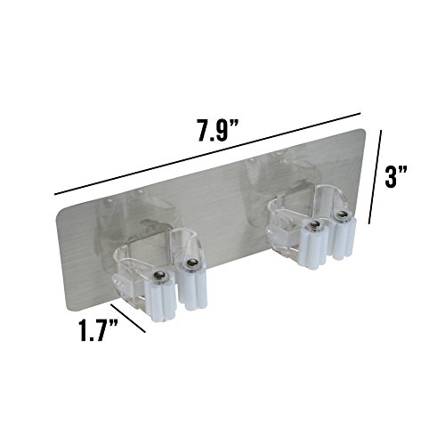 -. Feature : Material: ABS, Stainless Steel; Size: 9*9 cm / 3.5*3.5 inch. / Keep Your Home Clean: All your tools in organization, makes your home stay bright and clean. And no marks, no holes, harmless on your wall, cleanly remove. / Easy to Install: Fix it without tools, no drilling, no screws. Well done in 1 min, strong and sturdy. Load weight up to 5kg / 11lbs (single hook), 8kg / 17.6lbs (double hook). / New Design: Stretchy design, holds items firmly, and easy release. Clamps different sizes of tools and accessories with 0.8"-1.0" diameter handles. Easy to use, and save space. / Wide Application: The simple magic holder hanger organizer fit for Home, Kitchen, Garage, Garden, Bathroom, Office and anywhere needed. Hang your Cleaner Tools, Dust Pan, Swiffer, Umbrella, Baseball Bat, Golf Brassie, etc.
