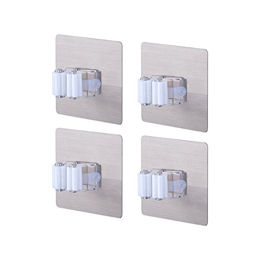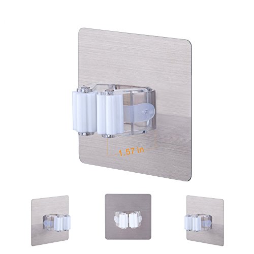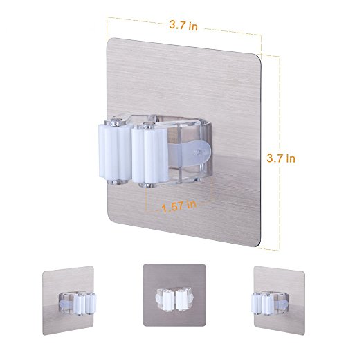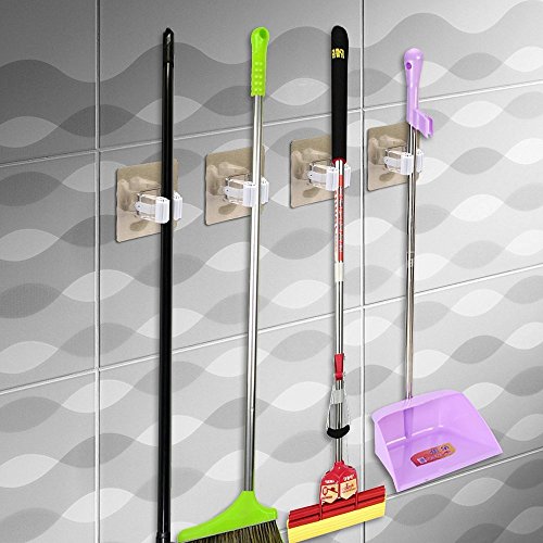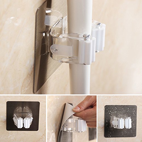 -. Title : Mural Art Broom and Mop Holder 3M Self Adhesive Reusable Mop Rack Holder Wall Suction Hooks Organizer for Bathroom and Kitchen, White
