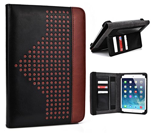 -. Feature : UNIVERSAL CASE APPROXIMATE DIMENSIONS: 9.5 X 7 X 0.45 inches / 10 inch tablet case doubles as a stand / Designed with 3 built in card slots / Slim and portable / Made with durable PU Leather