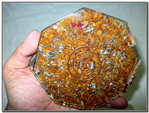 - Feature : Yellow Jasper Vastu Orgone Plate. Kindly note that since all our items are handcrafted there always exists minor deviations in size, color and looks. However, the Healing Qualities and Metaphysical Properties are excellent. A++. Have you ever wondered why you feel energized after a storm? Does your mood ever lift after you have walked in the countryside breathing in fresh air? The air around us is charged with electrically filled particles called Ions they are both positive and negative, too many positive Ions will cause an imbalance in our bodies they create free radicals which dramatically increase the aging process and unbalance us causing cellular damage. Free radicals can be caused from the following: central heating systems, air conditioning units, TV's, microwaves, speakers, stereo unit, radar systems, computers, car exhaust fumes, cigarette smoke, radiation and harmful toxins. They damage cells which is thought to be the reason for mental health and physical conditions including cancer. I am passionately researching and learning about orgone everyday, that can help reduce the effects of the above appliances causing the ions that we live in to change from positive to negative thus meaning a calmer more energetic way of living. / Jasper is considered a Power Stone and a stone that accepts intense responsibility as a Protection Stone. Jasper gives one the courage to speak out and have personal independence. It's a stone of the earth, and therefore a very "grounding" stone. All Jaspers have excellent protective energies. Jasper comes in a limitless number of colours, patterns and combinations. Jasper is the stone of selflessness; It is the mother of all stones, bringing about "Big-L" Love of all mankind. Jasper makes its effects known slowly and gradually, just like nature. We have used Copper Coil around it to get the maximum benefits out of this divine and brilliant product of ours. BENEFITS OF ORGONE ENERGY In the environment and atmosphere around us we are intimately intertwined through electromagnetic fields of all things. In these electromagnetic fields exist electrical particles called ions and they exist everywhere. Naturally, ions are called "negative ions", they heal and protect the human body and psyche. But with man-made structures, technology and especially wireless man-made energy, these wonderful "negative ions" become damaged and turn into "positive ions" which destroy and harm our bodies. In today's modern world we are always bombarded with these unnatural harmful ions in the air. If you take an ion tester to nature, we have seen that the reading always comes out as negative. Healing negative ions are what nature originally intended for us. Now with orgone, we have the opportunity to transform our environment back to a natural state. Every city and man-made home should have one. Our Reiki Orgone Devices are made to capture and enhance the natural abilities of crystals! The crystals are chosen for their energetic properties and placed in a special resin with gold, silver, and copper. The Metal allows the etheric energy to literally be conducted and sent out the top end. / Vastushastra is the science that synchronizes a balance between human life & nature. Nature consists of five elements. These are water, fire, earth, Air (atmosphere) and Sky (space). The five basic elements, the eight directions, the electromagnetic & gravitational forces of the earth, the cosmic energy emanating from the planets as well as the atmosphere and their influence on human life have all been Benefits from using my orgone devices: • Block negative mind control transmissions • Cleanse area of negative occult energies • Place near cell towers or power lines to neutralize • Create an optimal atmosphere • Cleanse the energy of a large area • Attract positive energy to a property • Prevent Chemtrails from polluting • Help crops grow • Remove poisons, germs, and biological influences • Block harmful radiation • Create peaceful energy • Reduces Radiation caused by wireless technology • Reduces The Affects Electromagnetic Fields • Electricity leakages from TV's, Microwaves etc. The energy can be Felt! The energy can be seen by some - notably children and those who can see auras. If you cannot feel the energy right away - you will after spending enough time around your orgone - it makes you more energy sensitive! *Animals love the presence of an orgone. Cats especially have an attraction to orgonite. I have heard reports of birds, deer and other wild animals coming when these devices have been placed in backyards.Its also nice to see other plant experiments furthering the proof of the power of these wonderful orgone pieces! Examples of things that emit harmful radiations are cell phone towers (these companies go over their legal FCC radiation limit EVERY DAY), HAARP, satellite dishes, radar, wi-fi, wi-max, and telecommunication towers. Cell phone towers are pulsed at anywhere from 3 KHz to 3,000GHz moving at the speed of light according to the FCC. / Vastu shastra means science of architecture and construction. After years of research, Reich uncovered the process of cancer cell formation in the body from what was once healthy tissue: