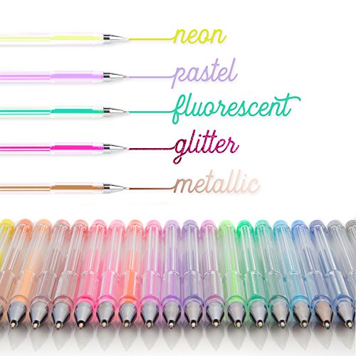 ✅ 60 UNIQUE COLORS, PRACTICAL STORAGE CASE AND 5 INK TYPES: This nicely packaged gel pens set includes 60 different colored, fine point drawing pens that will provide you with every color shade you might need. In addition, this multi-color gel pen set includes neon, fluorescent, pastel, metallic and glitter colors too, providing you with unlimited options and allowing you to unleash your imagination!