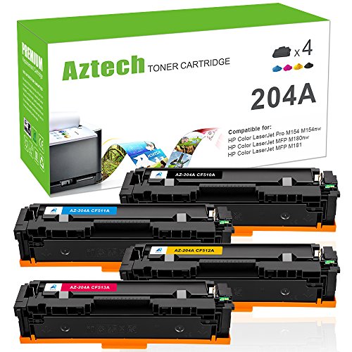 -. Title : Aztech 4 Packs Compatible HP 204A CF510A CF511A CF512A CF513A Toner Cartridge for HP Color LaserJet Pro M154 M154nw MFP M180nw MFP M181 P.R.Inter Toner (Black/Cyan/Yellow/Magenta)