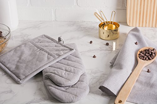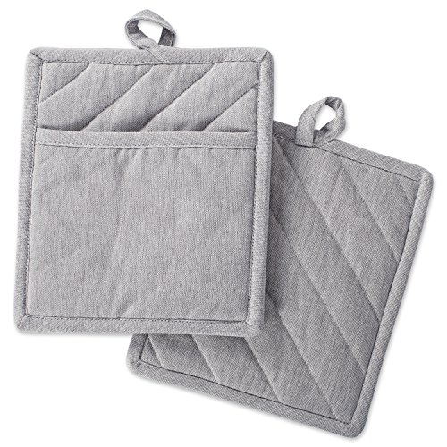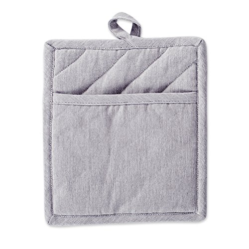 DII Cotton Chambray Pot Holders with Pocket, 9x8" Set of 2, Machine Washable and Heat Resistant Pocket Mitts for Kitchen Cooking and Baking-Gray