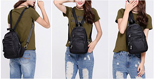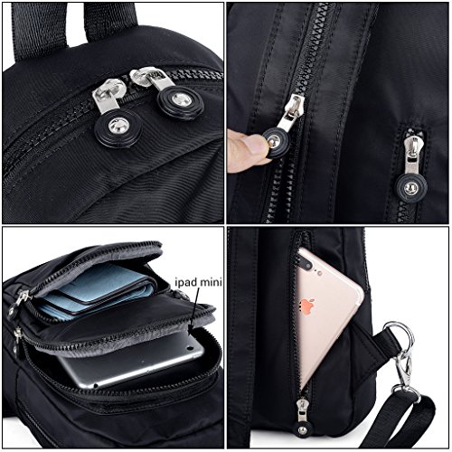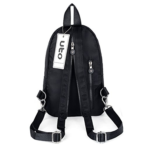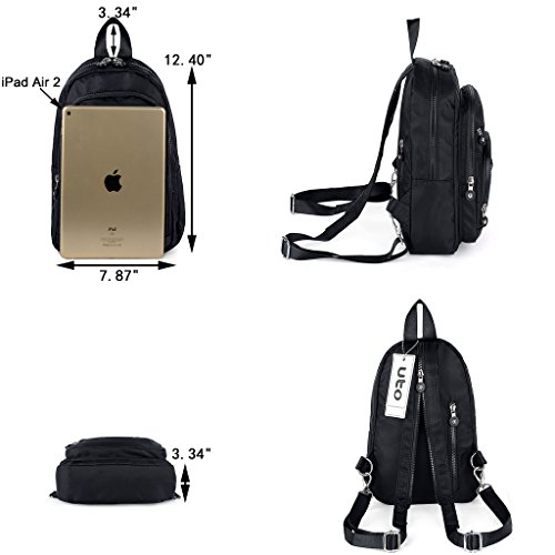 -. Brand : UTO -. Department : womens -. Feature : How to Convert this Bag? - ZIP UP the Strap and CLIP 1 D Shape Buckle to the same side. Easily make the bag from a backpack into a messenger shoulder bag. / WELL DESIGN - **High quality smooth Silver color zipper hardware. **Full-lined polyester lining. **Adjustable nylon strap prevents sliding off your shoulder. **DETAILED STREAMLINED DOUBLE STITCHING ON EVERY SEAM. / LARGE CAPACITY - Main zipper compartment contains 3 slip pockets and 2 inner zipper pocket. Exterior: 3 front zipper pockets, 1 front open pocket and 1 back zipper pocket. / EXTREMELY PRACTICAL - Comfortably holds a a 9.7" iPad, tablet or a LAPTOP 10" and under. Pockets can hold your smartphone/makeup/notebook/wallet/gum/sunglasses and other essential items. / DIMENSIONS - 7.87"L x 3.34"W x 12.40"H. Weight: 0.95 pounds. Handle Drops: 3.34". Shoulder strap length: 44.48". -. ProductGroup : Shoes -. ProductTypeName : HANDBAG -. Title : UTO Women Mini Backpack Nylon Daily Rucksack Multi Zipper Pockets Convertible Crossbody Shoulder Messenger bag