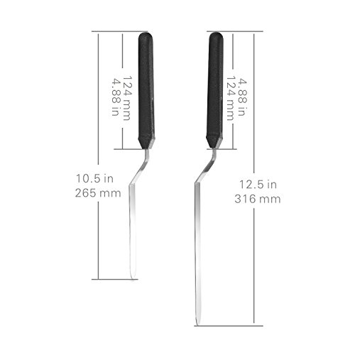 - Cost-Effective: Your purchase includes 2 ideal sized icing spatulas—12.5” (8”blade) & 10.5” (6” blade) they can get good coverage on layer cakes and also maneuverable inside baking pans. And you get the 2 offset spatulas at a best price.