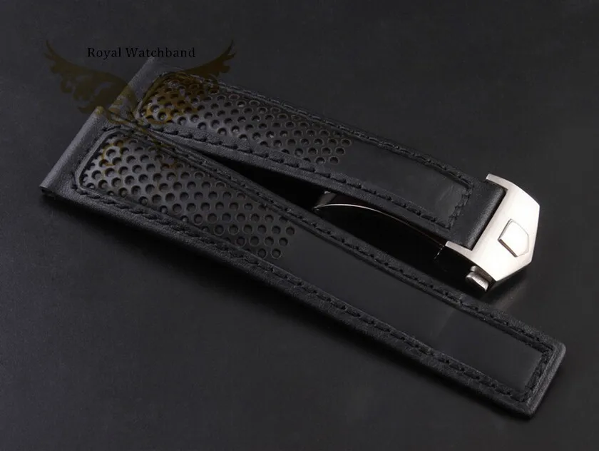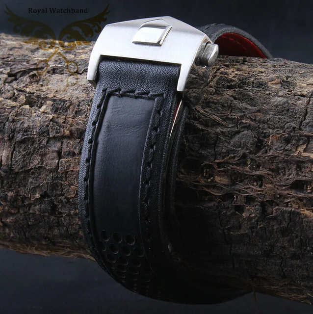 | [해외]22 미리메터 남성 블랙 정품 가죽 시계 스트랩 밴드 Depolyment 시계 버클 봄 바 |