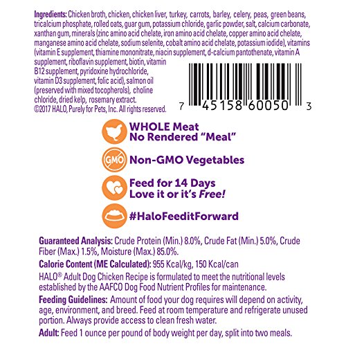 Halo uses real WHOLE meat, poultry, or fish, and NO "meat meal" of ANY kind in our natural dog food. We also have dog food options for special diets, including puppy food, small breed dog food, vegan dog food, senior dog food, and grain free dog food. At Halo, WHOLE Makes a Whole Lot of Difference is the philosophy that drives our holistic approach to ingredient sourcing, recipes, nutritional value, the welfare of ALL animals, and our overall mission to change the way companion animals are fed and farm animals are raised…for the better!Feature