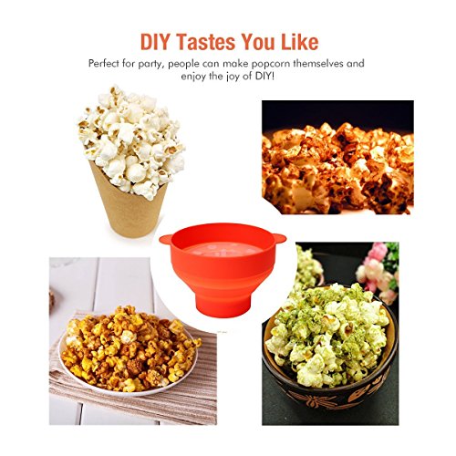 Popcorn Maker TAPCET Microwave Popcorn Maker Silicone Popcorn Popper Collapsible Popcorn Bowl with Convenient Handle and Anti-Splash Lid FDA Certified Red