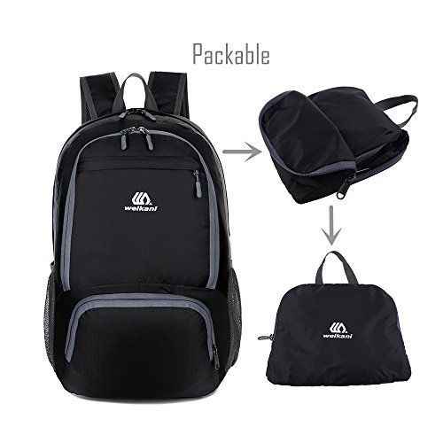 -. Brand : Puredazz -. Color : Black -. Feature : MULTIPURPOSE - Lightweight, Durable, Packable design. The backpack is perfect for day-to-day use or day trips, vacation, travel, day hiking, camping and great gift for everyone. / LIGHTWEIGHT AND FOLDABLE - This backpack only 0.66 lb, Easy to fold up into handy bag (Sandwich size). So you can pack it in suitcase or trunk , do not taking up space, Ultralight and Handy. Also when you need, unfold it to use it is easily. / DURABLE AND GREAT LOAD ABILITY - Made with high quality water/tear resistant nylon material. Abrasion resistant SBS metal zipper avaliable. With 15KG loading ability, satisfied all your loading requirements. / AIRPORT HERO - Avoid overweight charges, simply unfold from your lage and use it as a carry on for your excess baggage. / STORAGE SPACE & KEEP THINGS ORGANIZED - 30L storage space, 3 zippered compartments(large/mid/small), 1 inner pocket and 2 mesh pockets. Like laptop, books, clothes, water bottle, cell phone, umbrella, all the things can load in and organized. -. MPN : 43188-303516 -. PartNumber : 43188-303516 -. ProductGroup : Sports -. ProductTypeName : OUTDOOR_RECREATION_PRODUCT -. Title : Puredazz Lightweight Packable Durable Travel Hiking Backpack Daypack Foldable Water Resistant Camping Outdoor Backpack Handy Folding Backpack