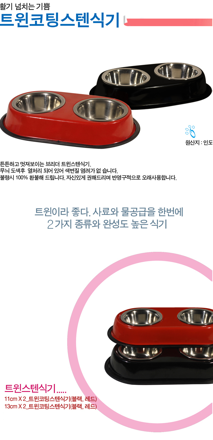 Puppy twin tableware Red 11cm pet dog bowl cat stainless steel coating