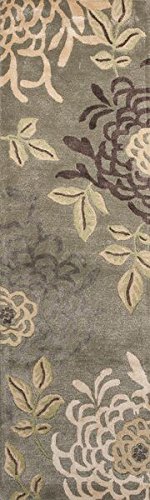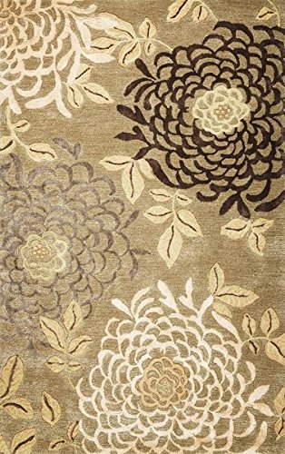 KAS Rugs Florence 4574 Sage Mums 30" x 50" Area Rug. Hand-Tufted, Wool & Viscose Textured Pile, Cotton Backing. Made in India.
