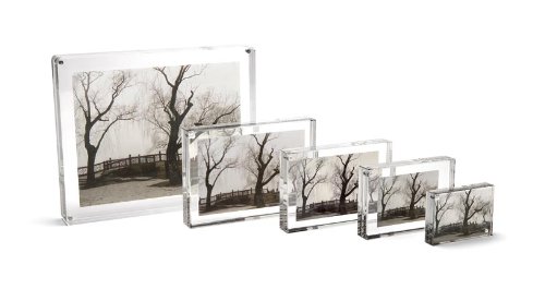 The Original Magnet Frame, by Canetti, is made of two thick panels of clear, solid acrylic which are held together by tiny magnet points. The picture is very easily placed between the two panels and is held securely with no additional hardware. Presented this way, the picture stands out clearly on its own, without any cumbersome frame around it. This frame can hold two pictures back-to-back. Pictures can be displayed either vertically or horizontally. It can hold a 2.5 x 3.5 inch picture or a smaller one can be floated inside the frame. Also can be used as a paperweight.Feature