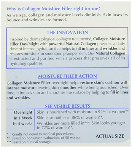 A dose of intense hydration and natural Collagen in Collagen Filler Moisture Day Lotion and Day/Night Cream is essential for younger-looking skin. Rich moisture instantly restores skin’s cushion and bounce. Over time, the powerful natural Collagen helps fill in lines and wrinkles, leaving your skin smooth and plump. In just 4 weeks, 78% of women reported seeing their wrinkles filled in. Use it for a complete collagen-infused skincare regimen.Feature