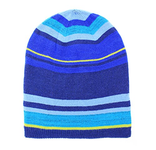 Kensie Women's Blue, Teal and Yellow Striped Knit Beanie Hat Cap