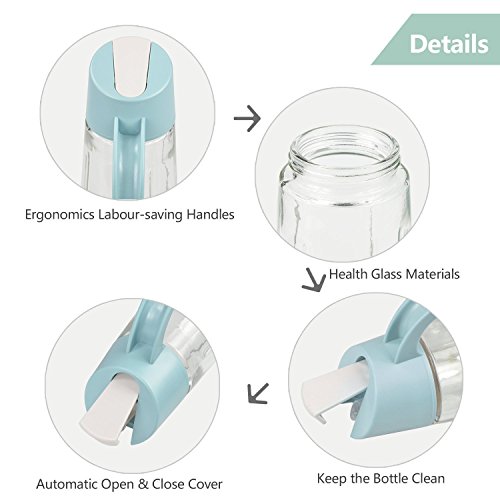 Product Description The traditional oil container may encounter several issues such that it might be difficult to control how much oil poured from the canister for cooking, even the oil drip or leak from the spout after use. As in fact that the kitchen would be messy and may need to spend time on cleaning. Fortunately, this Drizom liquid dispenser provides the perfect solution on above problems. This revolutionized liquid dispenser is innovatively designed with both automatic stopper and flute-style nozzle features, providing a precise pour spout, and preventing liquid dripping or spilling. The oil dispenser is made of sturdy glass with an airtight gasket lid that would allow the liquids to be stored flesh for longer. Additionally, it can be easily cleaned using kitchen towel and dishwashing liquid. Its delicate pear shape fits perfectly with any kitchen decor, and this specially designed liquid dispenser is worth buying to keep the dinner table elegant. However, it should be noticed that the high viscosity fluids, such as honey, are better not to be dispensed through this liquid dispenser. Furthermore, should you never pour the boiled liquids to the container directly unless they are cool down. Product Specifications: Color: Blue Design:Automatic stopper cap, a flute-style stainless steel nozzle, pear shape bottle Materials: Glass, Stainless Steel, PP, Silica Gel Capacity: 17 oz/500 ml Warranty: 2 Years warranty guaranteed for our Oil Dispenser 0