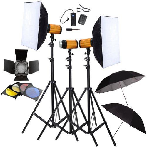 - Feature : Three(3) Smart 250SDI 250W Studio flash strobe light lamp head / Three(3) 6.23ft/190cm aluminum light stand for studio and on-site use / one(1) Wireless studio flash RT-16 16 channel trigger & receiver / Two(2) High Quality 33" Black/Silver Umbrella, Two(2) 22.5x52x3cm Softbox / one(1) Barn door with 4 color Honeycomb Grid & Gel ( White, blue, red, yellow )