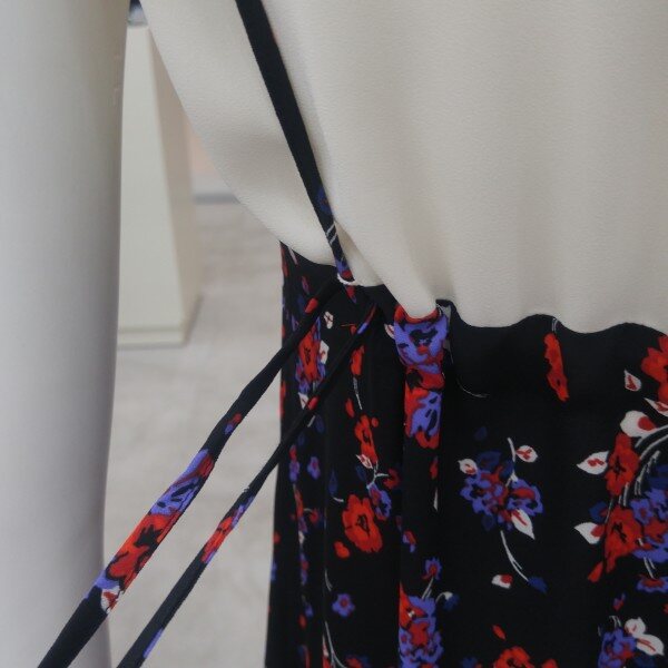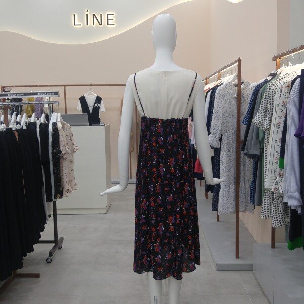 화려한 꽃 프린트의 뷔스티에 스타일 롱 원피스입니다. 등에 스트링끈이 있어서 루즈하게 혹은 살짝 조여서 섹시하게 연출하실 수 있습나다.