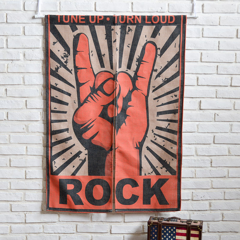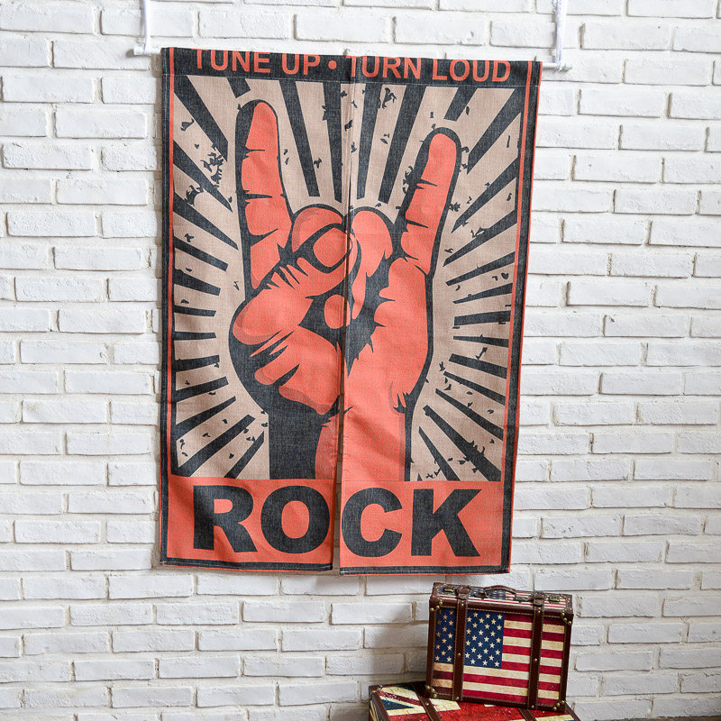 创意rock门帘个性棉麻挂帘复古半帘卧室隔断帘风水帘酒吧咖啡店