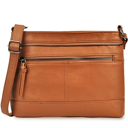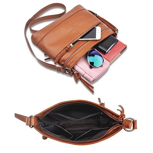 Crossbody Bag with Multi Zipper Pockets,Washed PU Crossbody Bags for Women Materials:High Quality soft washed PU Leather and Polyester Lining.