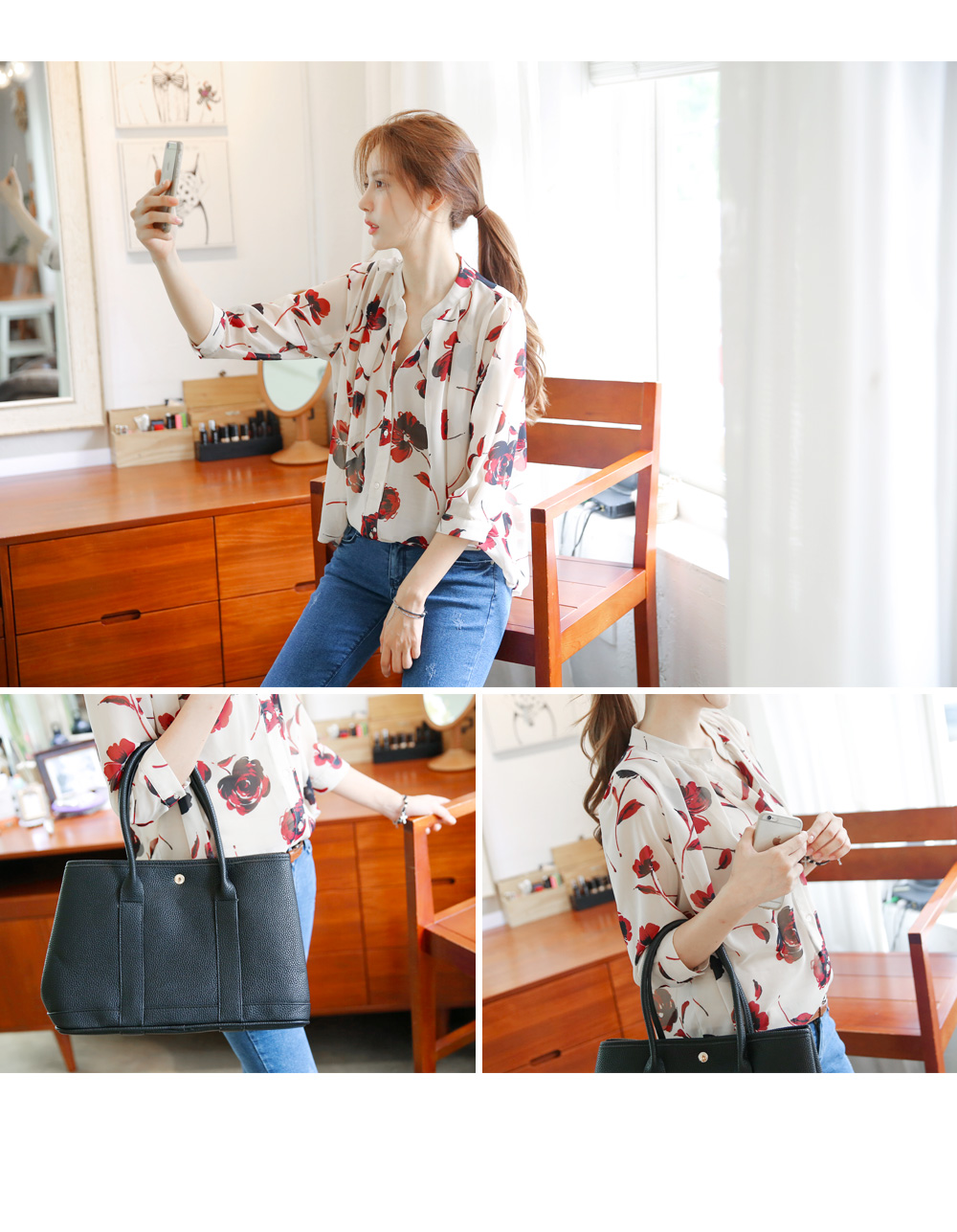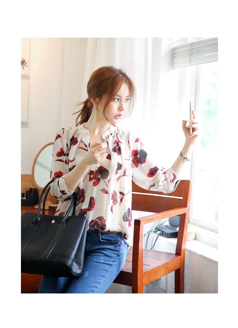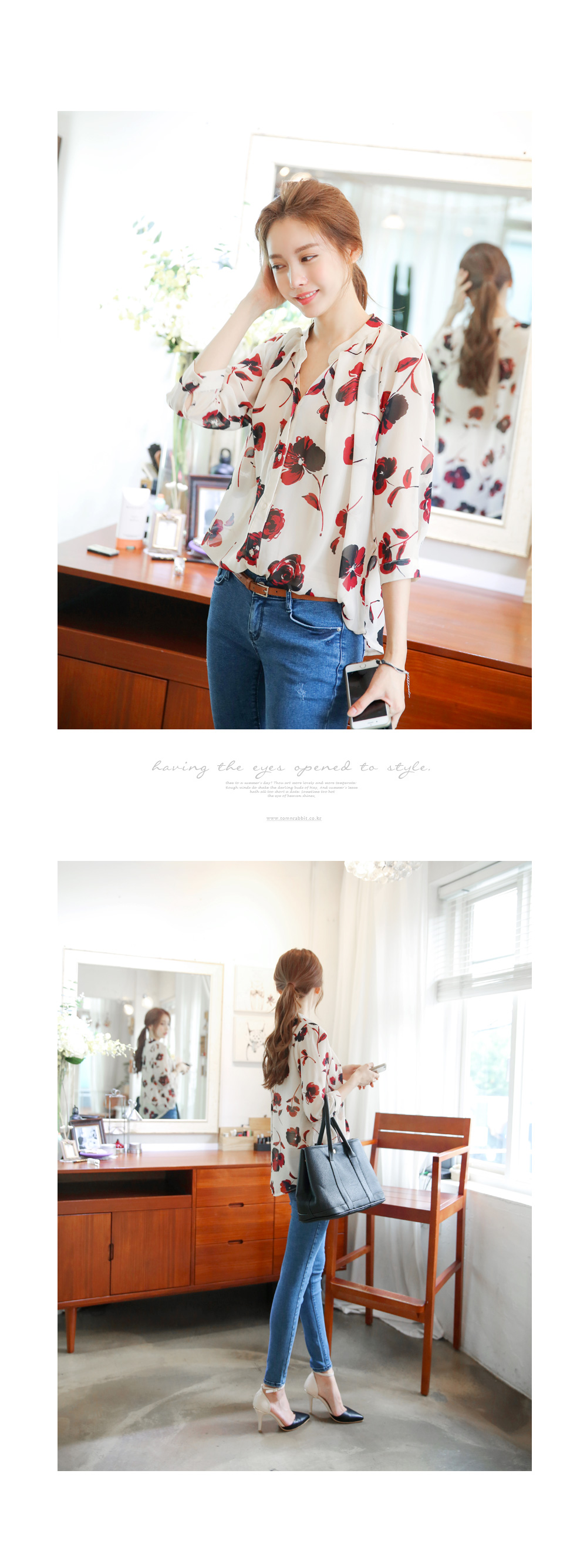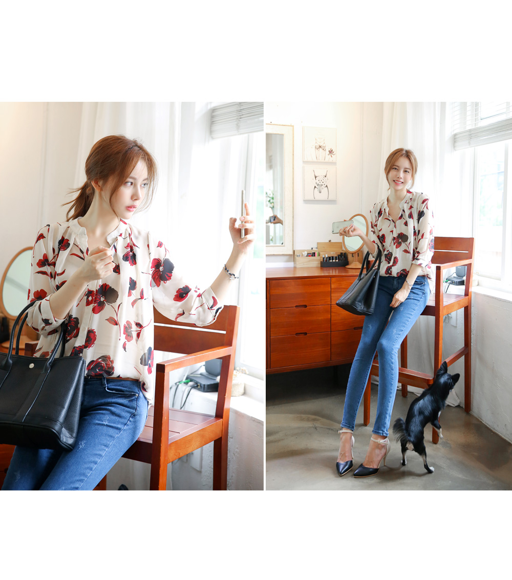 플라워 패턴의 블라우스를 소개합니다