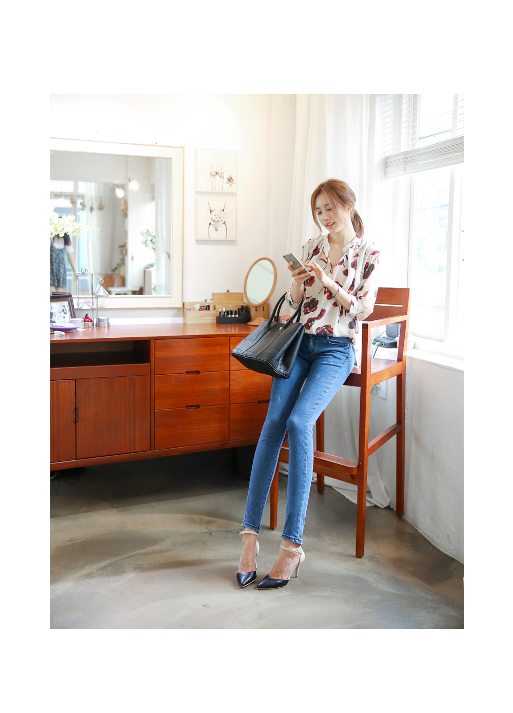 팬츠와 함께 모던하고 세련된 분위기로