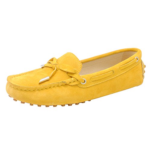-. Binding : Apparel -. Brand : Minishion -. Department : womens -. Feature : Design is great for all casual occasions / Soft vintage suede leather upper with moc construction / Sticker with a galloping horse / Please choose the shoes size according the size chart, If your foot is thick or wide, We suggest you choose a bigger size, Thank you / Shoes are not waterproof, please don't wear them in rainy days -. Model : YB9602 -. ProductGroup : Shoes -. ProductTypeName : SHOES -. Title : Minishion TYB9602 Womens Casual Suede Leather Loafers Driving Shoes Penny Moccasins Flats