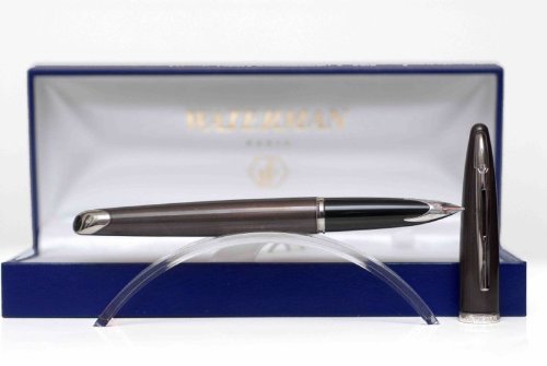-. Title : Waterman Carene: Frosty Brown ST Fountain-Pen, Silver Trims, Solid Gold Rhodium Plated 18KT Fine Nib.