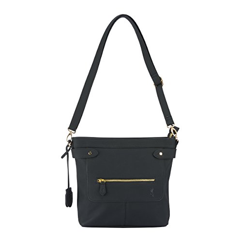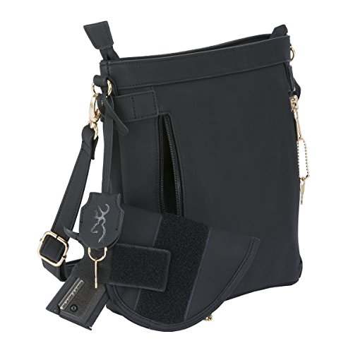 Our medium-sized concealed carry handbag that offers a stylish design, ample storage space, and an integrated firearm holster, the Browning Catrina Cross-Body Handbag is made from a soft faux leather. Multiple entry points allows for quick response and easy access to your firearm and the branded hidden key ring allows the option to lock holster pockets when bag is not in use. A range of interior pockets store and organize your daily essentials, while removable straps offer comfortable carrying.Feature