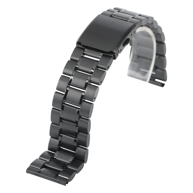 | [해외] 22 미리메터 블랙/실버 스테인레스 스틸 스트랩 시계 밴드 + 2 봄 바 금속 팔찌 걸쇠 교체 |