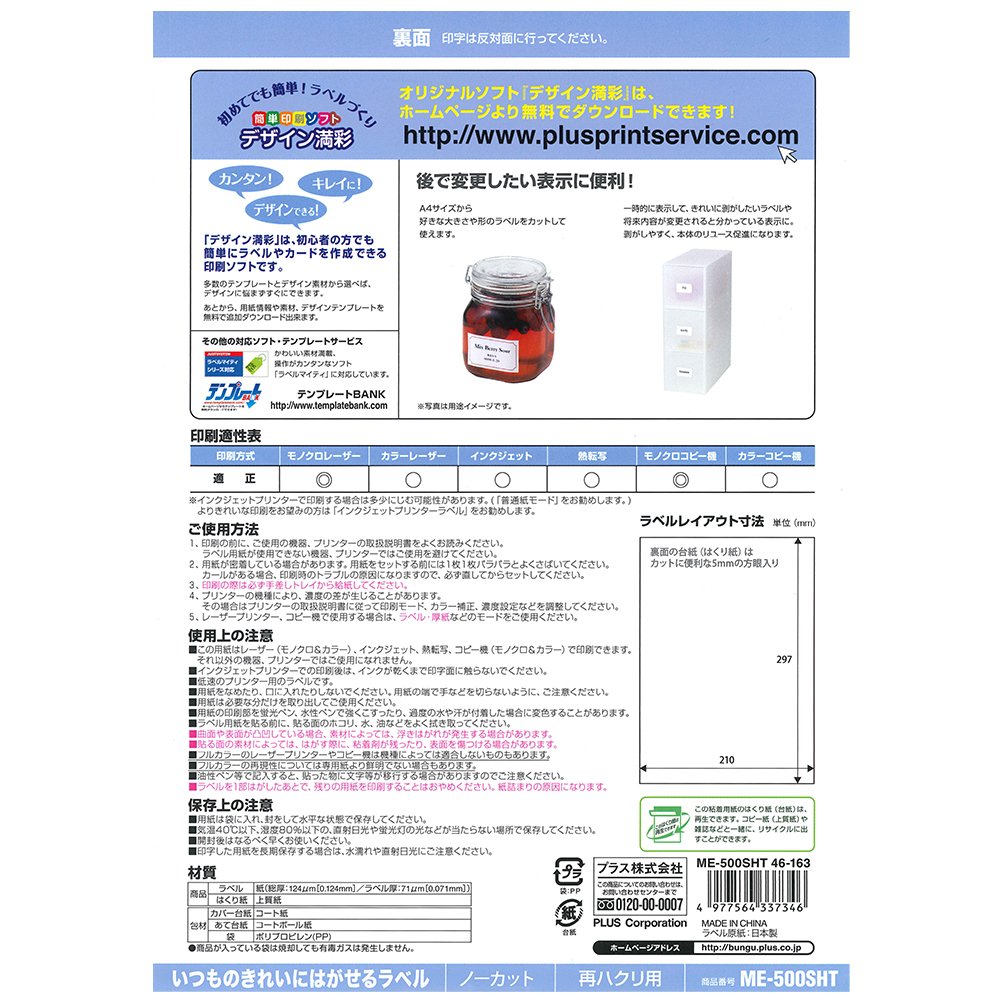 Plus label usual clean peel off the label 100 sheets of uncut ME-500SHT 46-163
