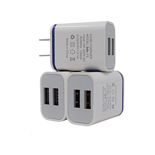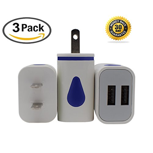 Dual USB Wall Charger / USB Wall Adapter With Multi-Port Charging 3 Pack 2-Port USB Travel Wall Charger [With Easy Grip Technology] 5V/2.1Amp for Speedy and Reliable Charging